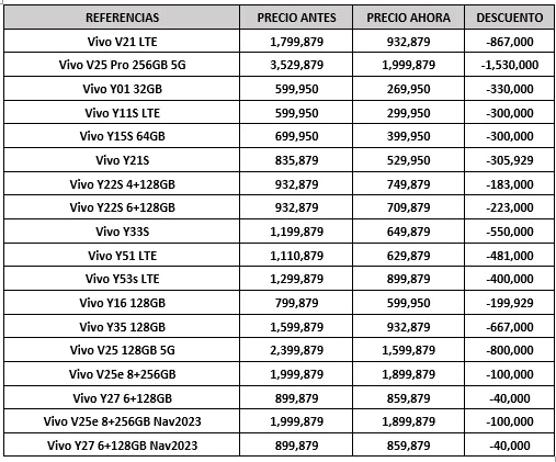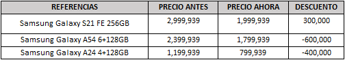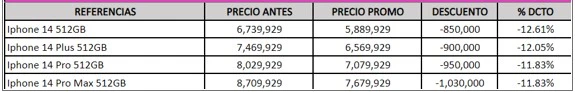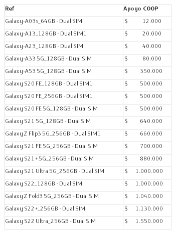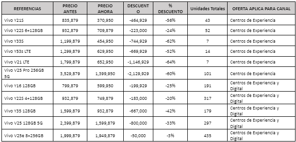 Oferta valida desde 18 de abril al 30 de Junio de 2022. Aplica por compra de smartphones en referencias seleccionada con precio igual o superior a $836.000 en línea nueva, portabilidad, renovación y reposición en planes pospago desde $75.990 mes. Por la compra del smartphone el cliente recibirá un bono de descuento hasta de $500.000 en la categoría de tecnología (Air Fryer, aspiradora, audífonos, bandas, bascula, cámara, cargador, computador, consolas, localizador, PC, router, scooter, smartwatch, speaker, tablets, tablet Lenovo, TV) este bono no es acumulable con otras referencias y el cliente solo tiene acceso a un bono de descuento (dependerá del accesorio que escoja) por cada smartphone adquirido dentro de esta oferta.