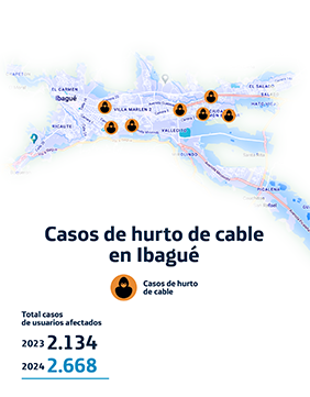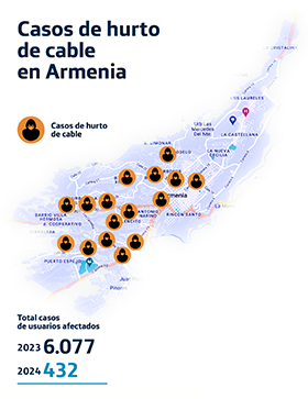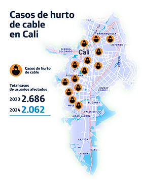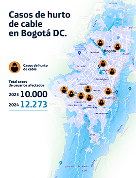De acuerdo con la investigación y reportes frente al hurto del cable a nivel nacional, las zonas más afectadas son: Atlántico, Medellín, Cesar, Bogotá, Valle del Cauca, entre otras.