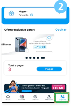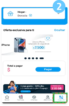 1. Ingresa con tu línea Pospago y ve a la sección "Hogar"