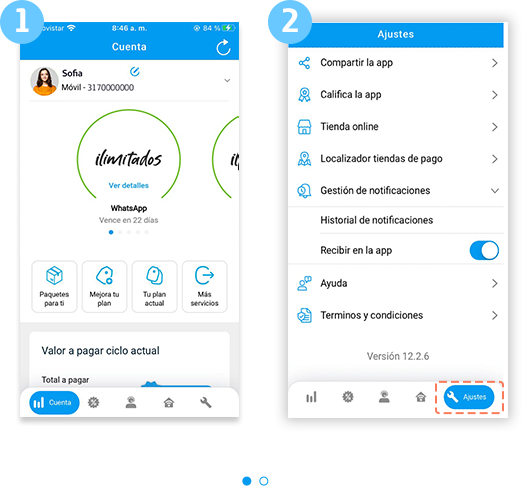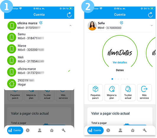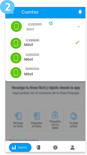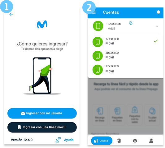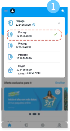 1. Ingresa a la App y elige tu línea móvil o tu usuario