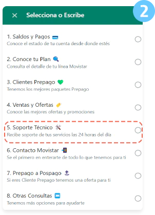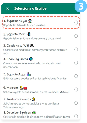 3. Luego, selecciona la opción 1 “Soporte Hogar”