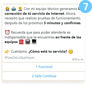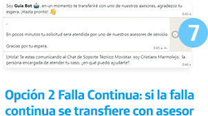 8. Si eliges la opción “2 Falla Continua” serás transferido con un asesor.