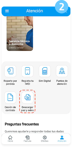 1. Ingresa a la App Mi movistar y selecciona “Atención” en el menú inferior
