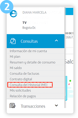 2. Busca en consulta la opción "Consulta del historial IMEI"