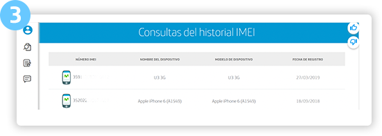 3. Verás el historial de equipos que has tenido con Movistar y sus respectivos números IMEI