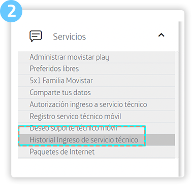 2. Busca en Servicios la opción "Historial ingreso de servicio técnico"