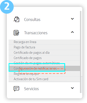 2. Busca en transacciones la opción "Configuración de notificaciones"