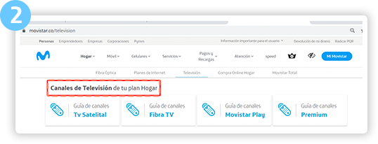 2. En la parte central encontrarás las diferentes parrillas de Televisión de acuerdo a tu plan contratado
