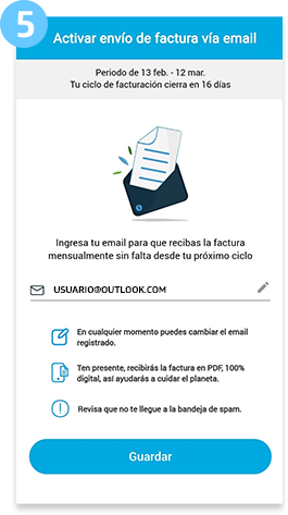 6. Escribe sin espacios el correo electrónico en el cual deseas recibir tu factura digital.