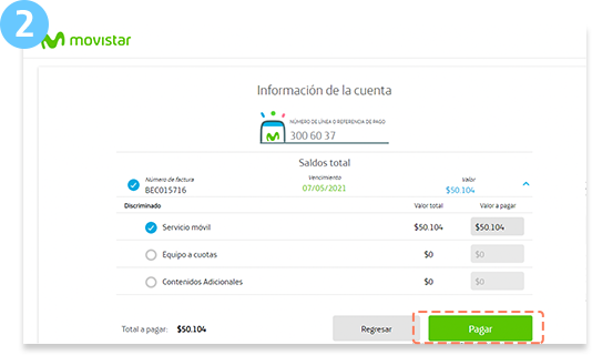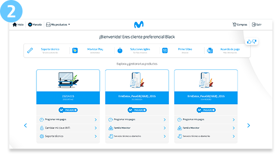 2. Selecciona tu producto móvil, hogar o Movistar Total.
