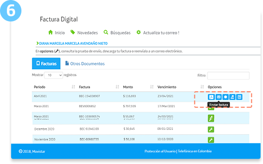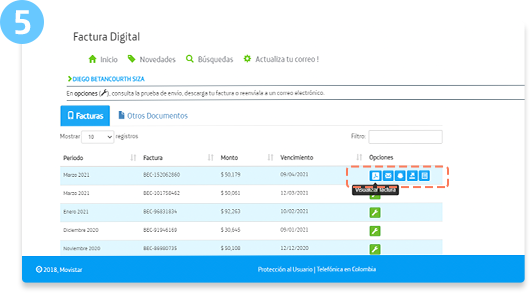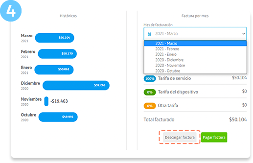 4. Puedes darle clic en descargar o revisa el historial de facturas.