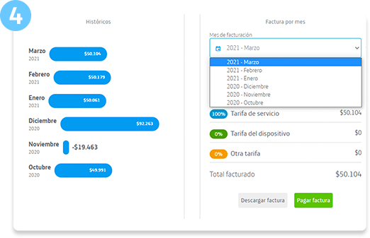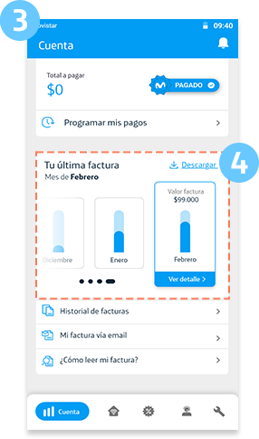 4. Consultar la sección 'Tu última factura', ahí podrás desplazarte a través del carrusel de facturas y ver los últimos 4 meses.