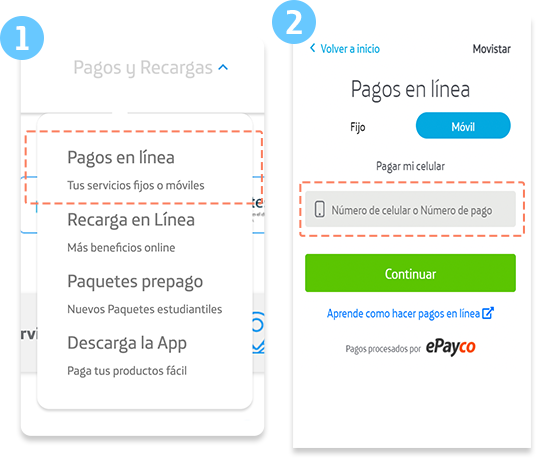 2. Ingresa los datos de tu servicio fijo o móvil.